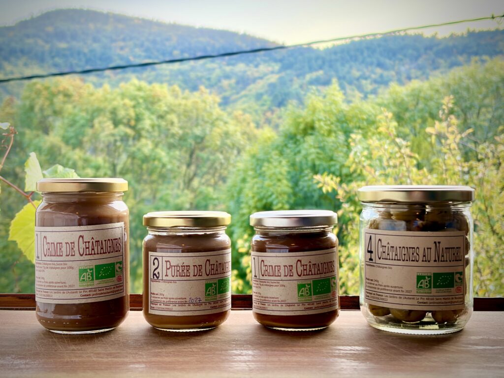 Purée de Châtaignes, pots de 205Gr (5€/pot) En cartons de 12 pots.